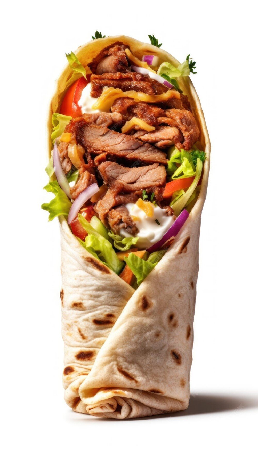 Лаваш. куриное мясо. салат. помидор. огурец свежий. фирменный соус